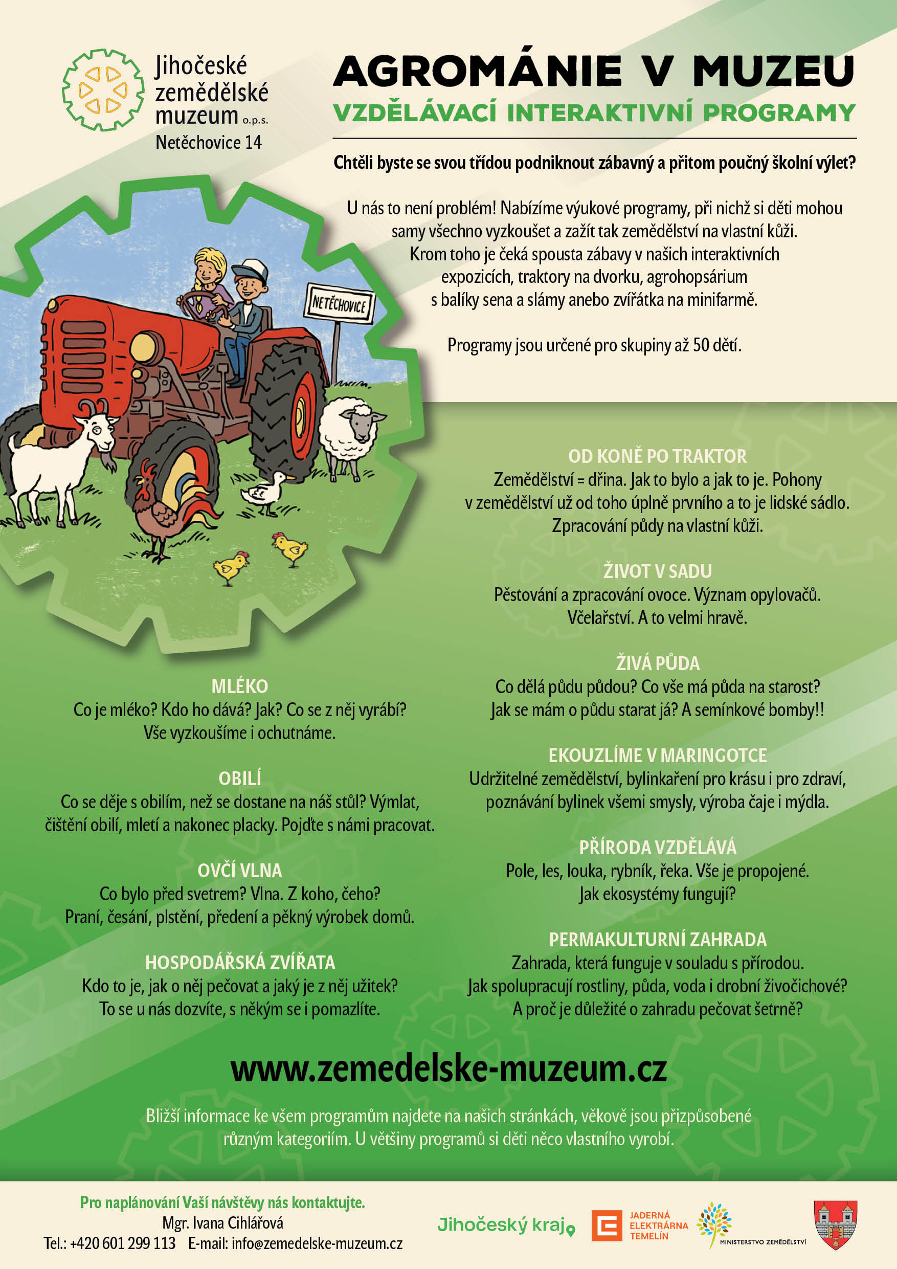 Pro objednání a naplánování Vašeho výletu volejte na tel. číslo: +420 601 299 113 nebo pište na mail: info@zemedelske-muzeum.cz